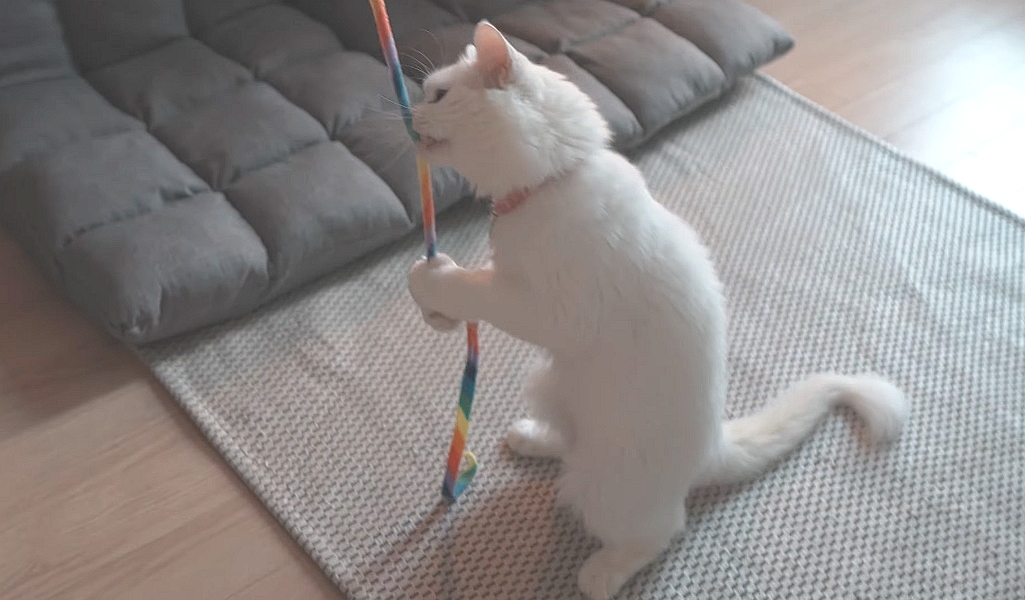 • Having a companion cat helps too! They expend their energy on each other and practice their hunting and chase each other around. Cats are not solitary animals even though they might be uncomfortable for a little bit. Follow my easy introduction steps! They enjoy the company and help each other’s development.